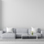 Gray sofa in white living room interior with copy space, 3D rendering